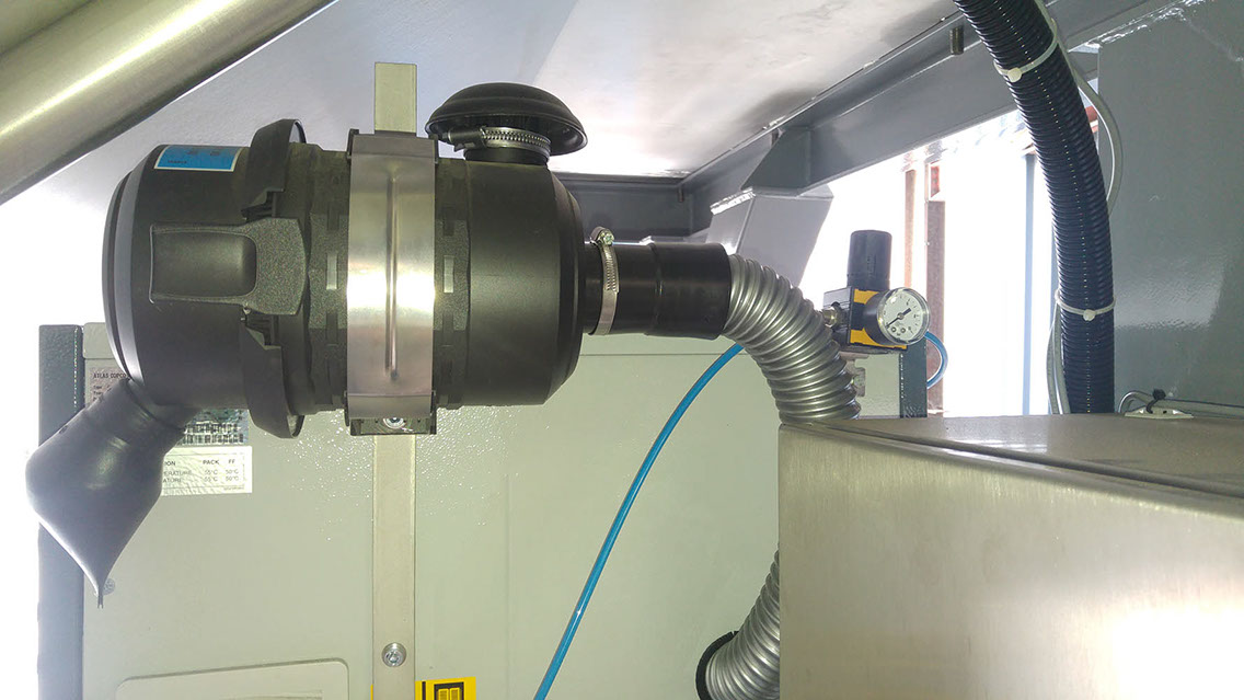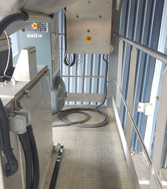 Sa configuration sur deux étages permet un gain de place. L’étage supérieur contient la trémie, le compresseur ainsi que la doseuse pondérale permettant une précision de 18/22 g par sac.