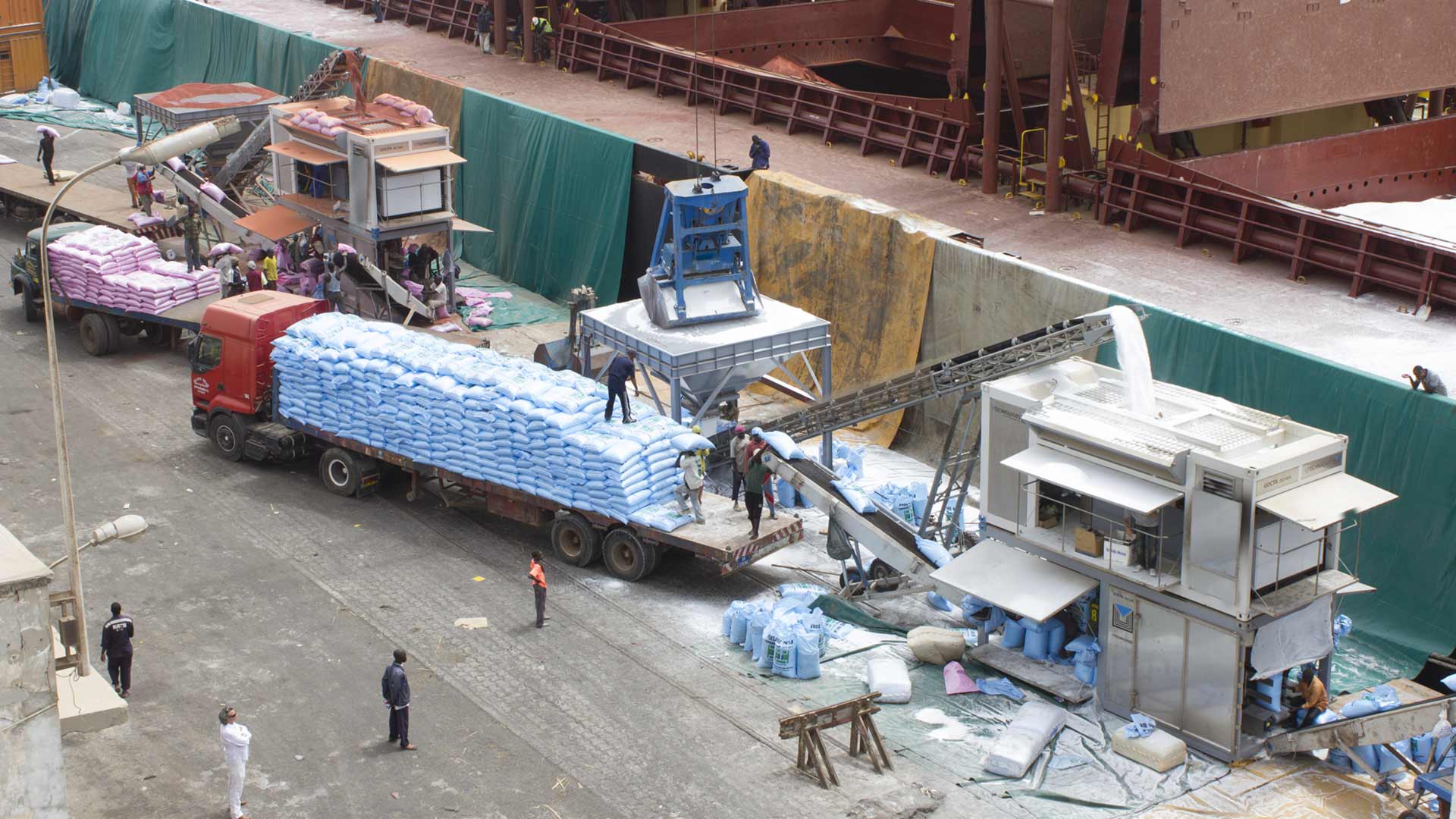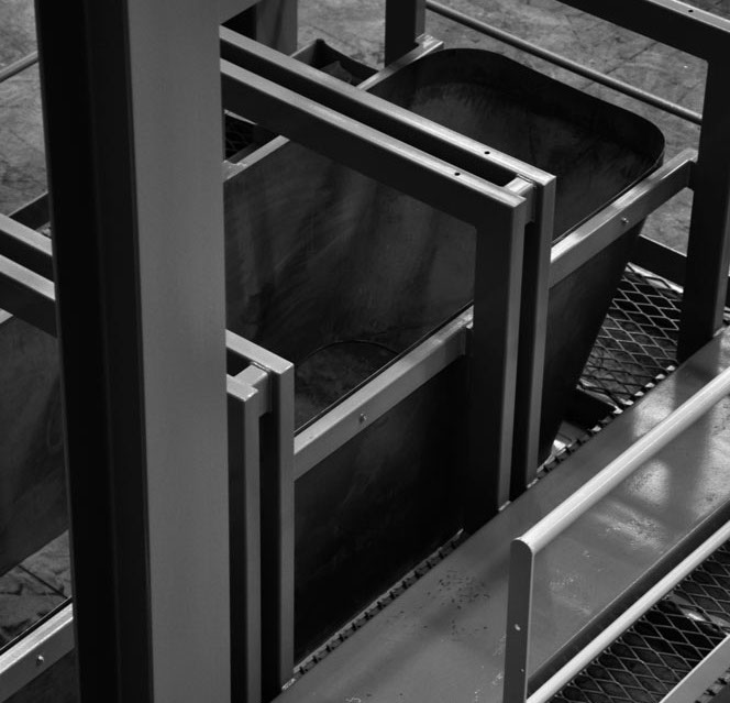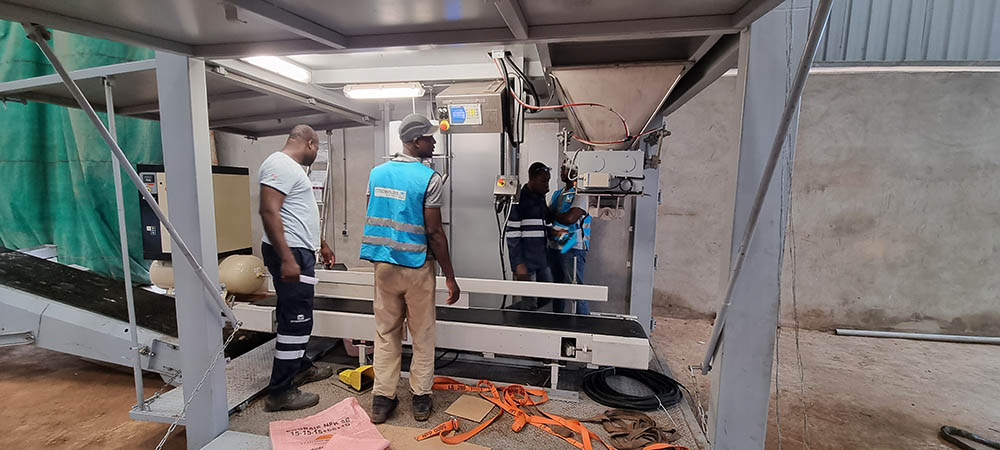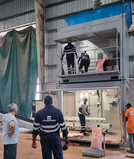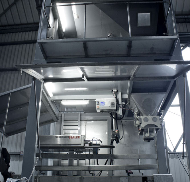 Ceux-ci permettent la réception de la matière première et la fermeture du sac. Une fois le sac cousu, il monte sur un élévateur de mise à l’épaule afin de permettre le réglage des sacs sur les véhicules transporteurs.