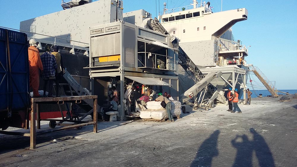La machine « GOCTA » est une ensacheuse industrielle portuaire mobile, full inox. .