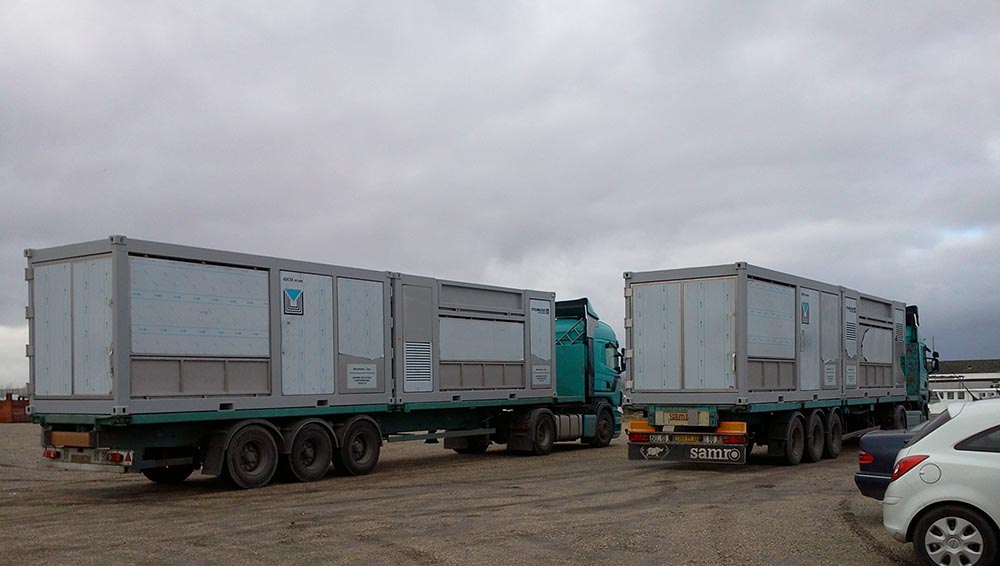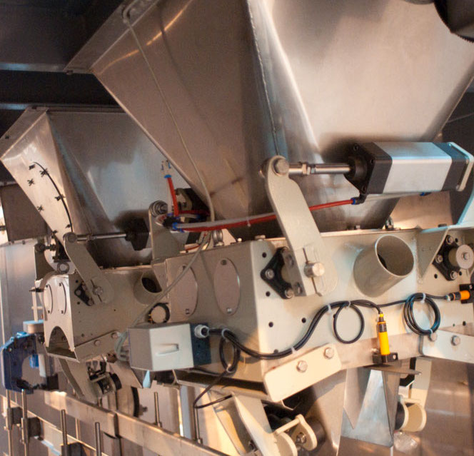 L’étage supérieur contient la trémie, le groupe électrogène, le compresseur ainsi que les doseuses pondérales grande précision 18/22 g par sac.