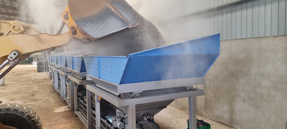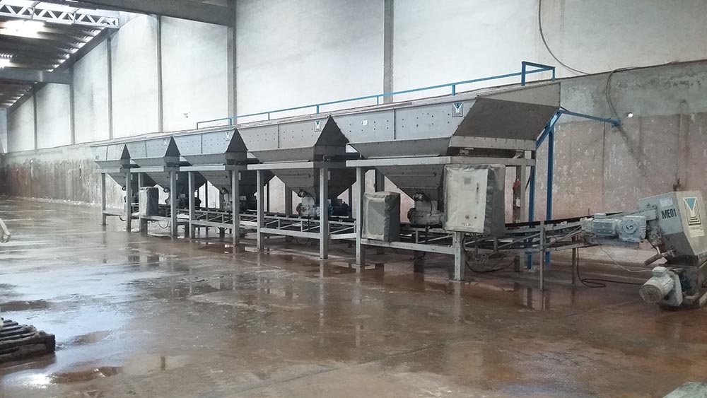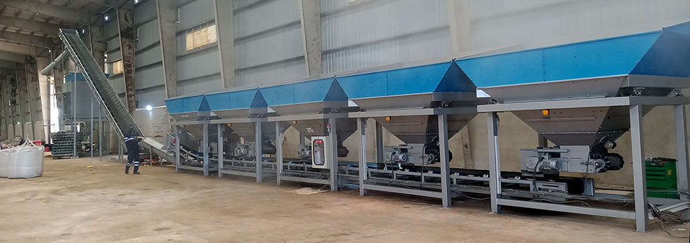 Le mélangeur « Melix 5 » en inox, est composé de cinq trémies. Celles-ci sont reliées par un convoyeur à bande permettant de faire différentes formules à partir de plusieurs matières premières (engrais).
