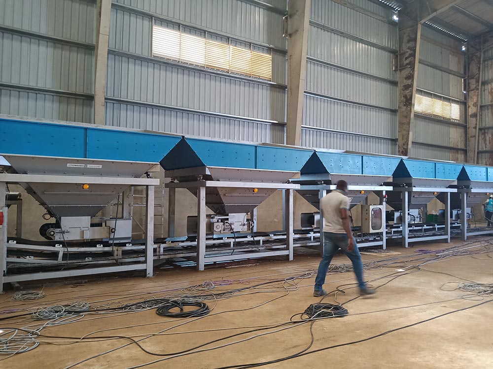 Les matières premières sont réparties dans chaque trémie pour ensuite être pilotées selon la formule demandée dans le programme. A la mise en route du système, chaque trémie déverse sur le tapis la dose requise progressivement. Les engrais tombent dans une vis de mélange afin de rendre la formule homogène et ainsi être ensachés ou stockés en vrac. Le mélangeur Melix 5 a une capacité de production optimale de 150 t/h notamment grâce à son système d’automatisation Siemens.