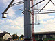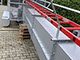The elevator is made of stainless steel to withstand corrosive products such as fertilizers. The belt supporting the conveyor buckets is mounted at the top and bottom on adjustable tension pins.